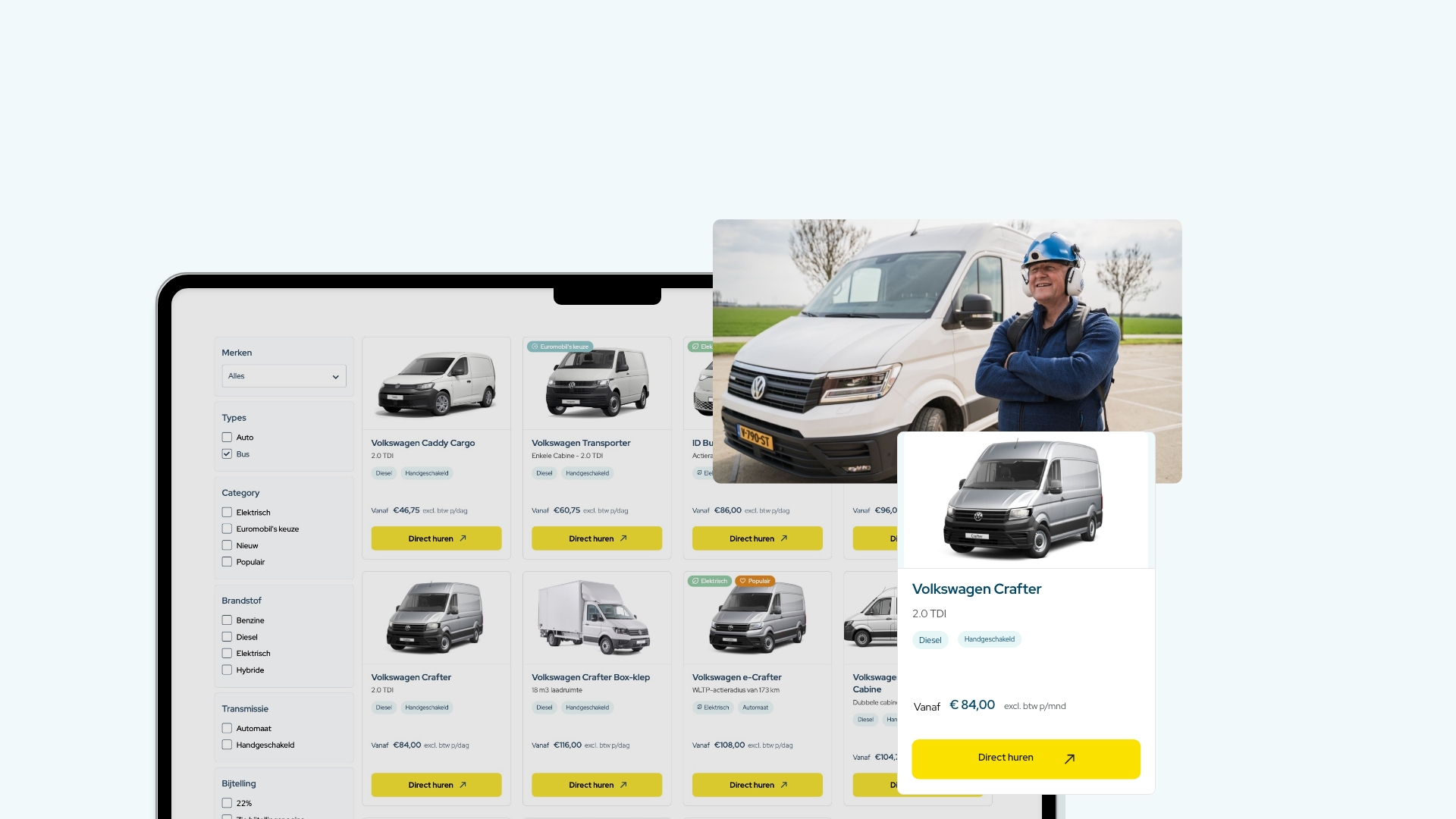 Het platform is gebouwd met performance in gedachten. Door te kiezen voor een Vue.js-frontend combineren we snelheid met flexibiliteit. En dat merk je: gebruikers kunnen intuïtief filteren, selecteren en aanvragen afronden, zonder afleiding of ruis.